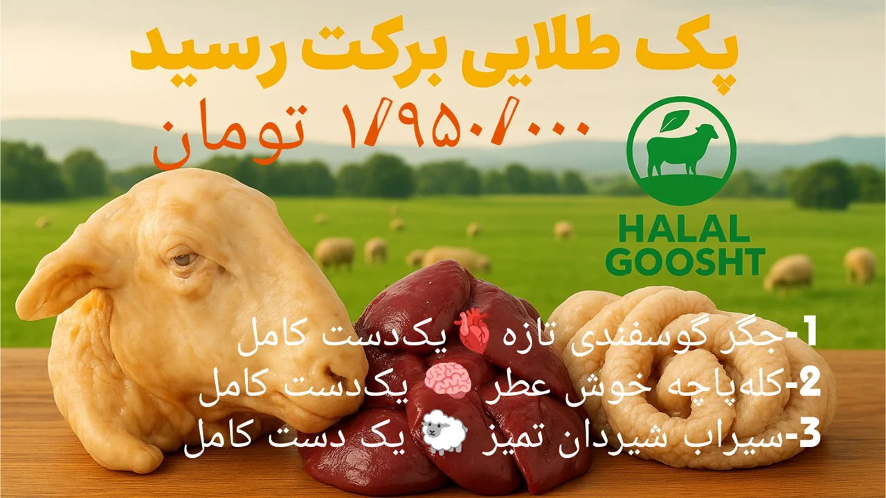 🥇 پک طلایی برکت رسید!یک دست کلهپاچه خوشعطر🧠، یک دست جگر گوسفندی تازه🫀، یک دست سیرابی کامل و لذیذ🐑همه با هم فقط ۱,۹۵۰,۰۰۰ تومان!تازگی و کیفیت، مستقیم از «مزرعه دامداری برکت» تا سفرهی شما 🌿🐑
